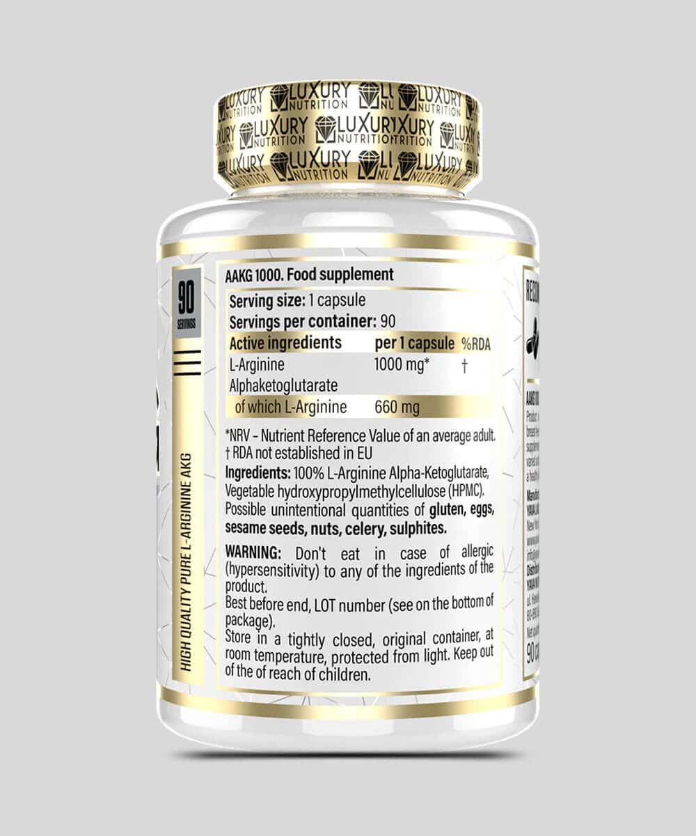 100 % L-arginine alpha-cétoglutarate, enveloppe végétale (hydroxypropylméthylcellulose – HPMC). Peut contenir des traces involontaires de gluten, Å?ufs, graines de sésame, fruits à coque, céleri, sulfites.