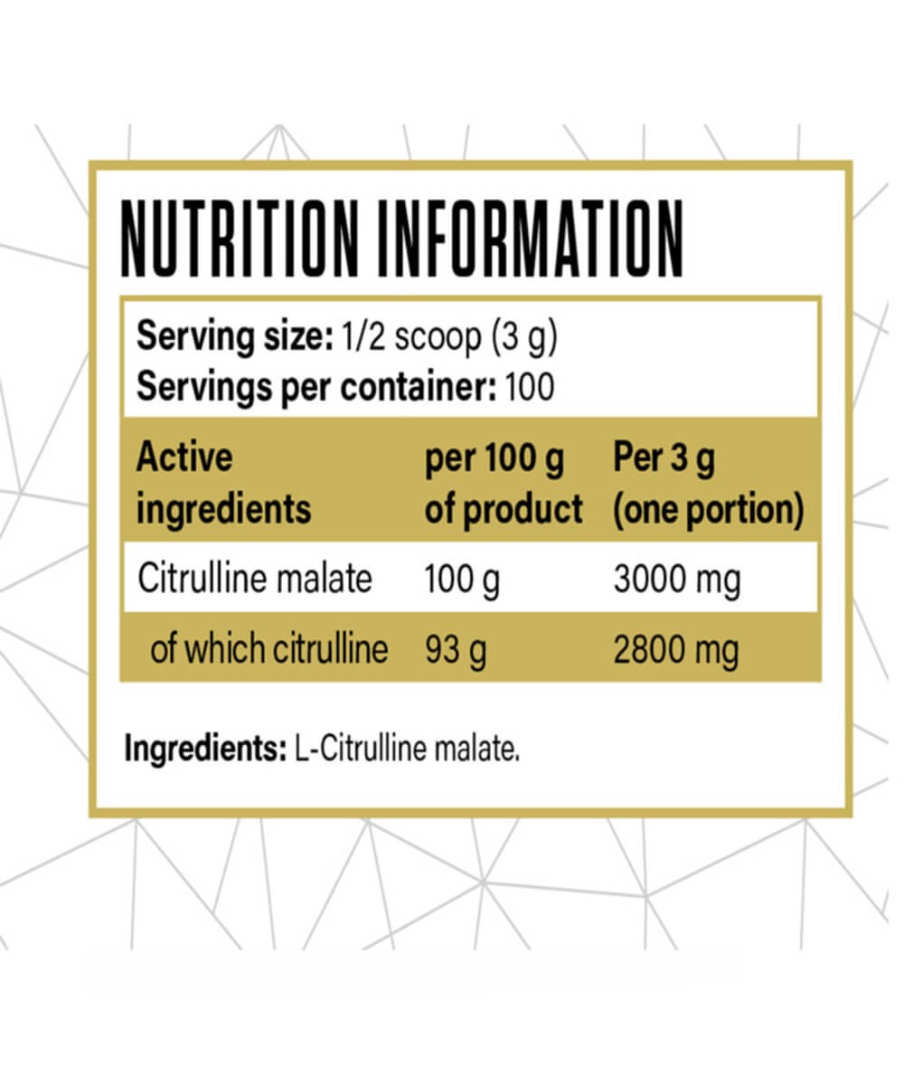 -  Forme pure et hautement dosée : 100% citrulline malate, sans édulcorants ni additifs.