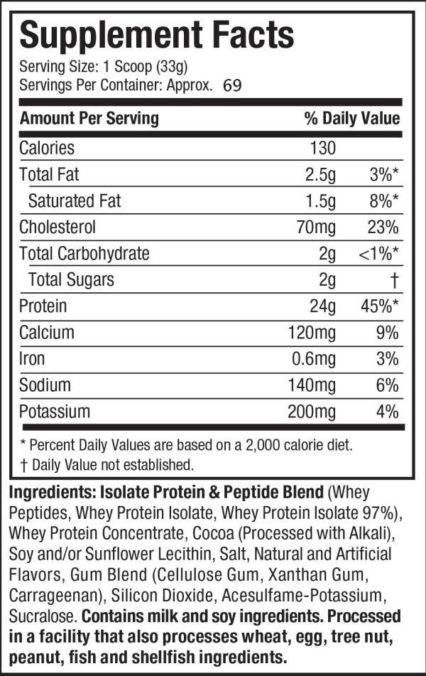 • Peptides de protéine de lactosérum plus 100% de lactosérum isolé et concentré